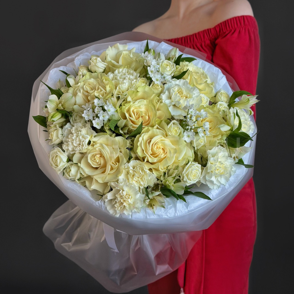 Возможны минимальные отличия букета от фотографии и допустимы отличия по цветовой гамме, так как цветы являются природным материалом и собираются вручную