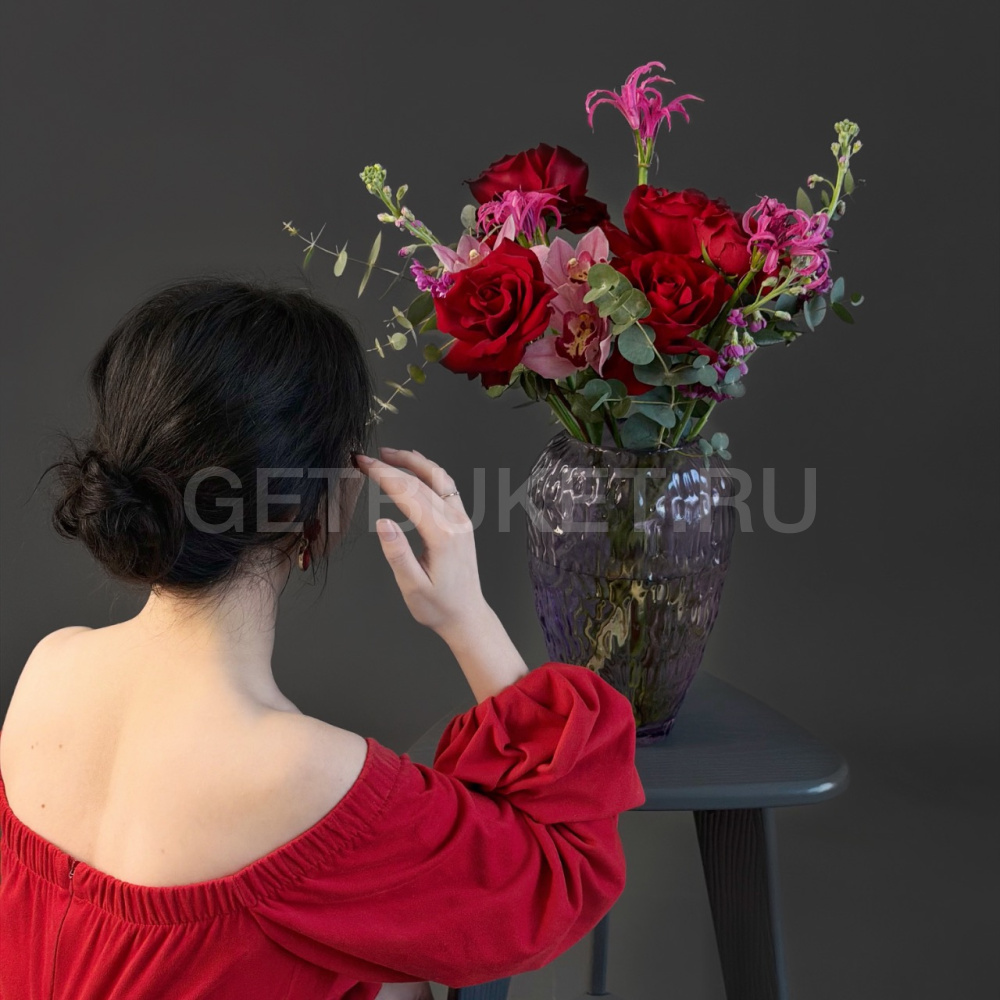 Возможны минимальные отличия букета от фотографии и допустимы отличия по цветовой гамме, так как цветы являются природным материалом и собираются вручную