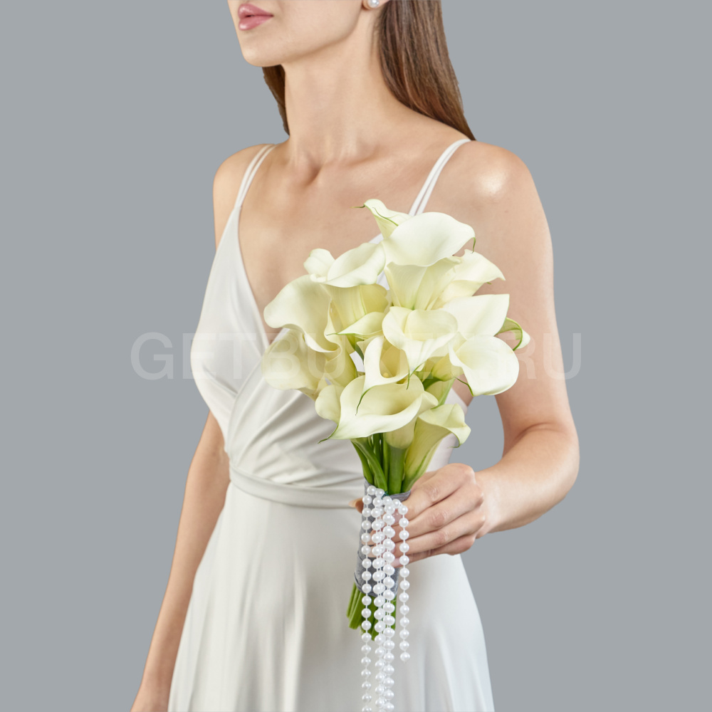 Букет невесты с каллами и бусами