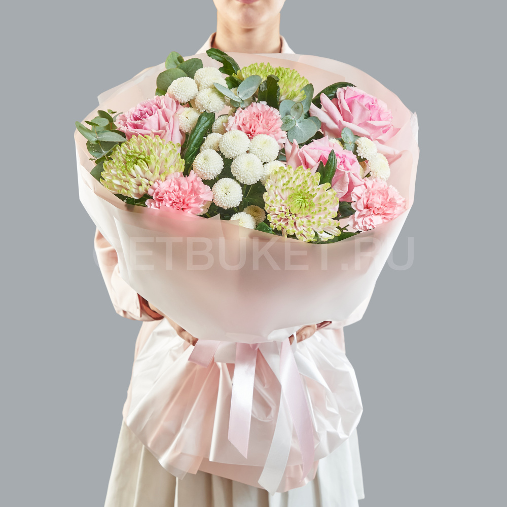 ХитБукет из розовых диантусов, роз и белых альстромерий4 800 ₽ХитБукет из розовых диантусов, роз и белых альстромерий 4 800 ₽ -