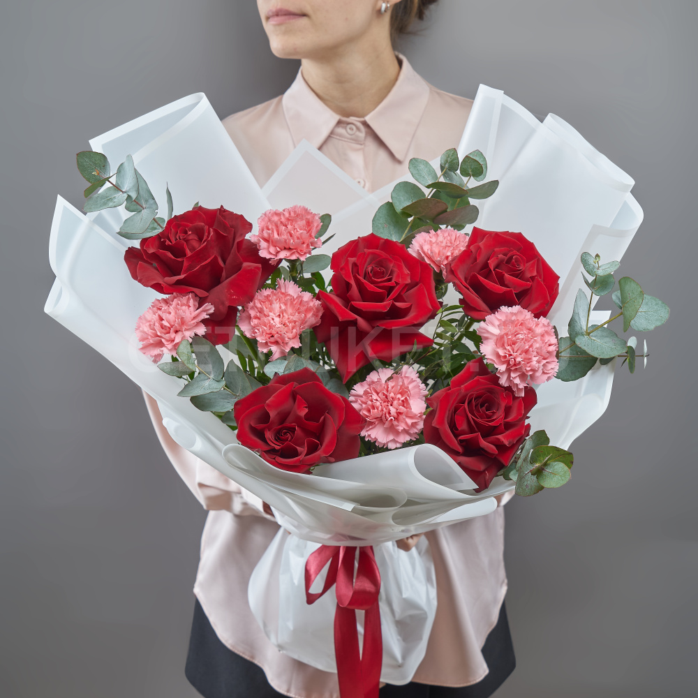 Букет роз с гвоздикой, эвкалиптом и пистакией8 730 ₽Букет роз с гвоздикой, эвкалиптом и пистакией 8 730 ₽ -
