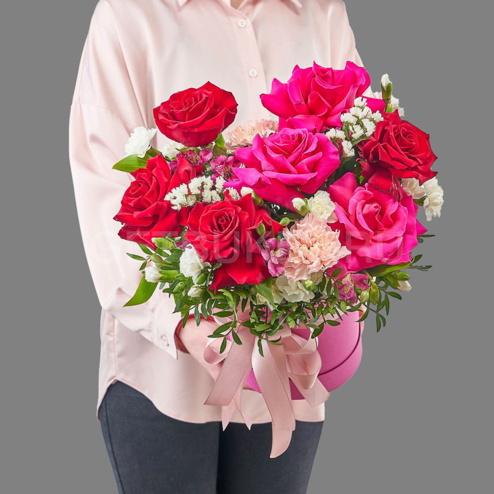 Цветочная композиция из роз, ранункулуса и нерине в шляпной коробке12 810 ₽Цветочная композиция из роз, ранункулуса и нерине в шляпной коробке 12 810 ₽ -