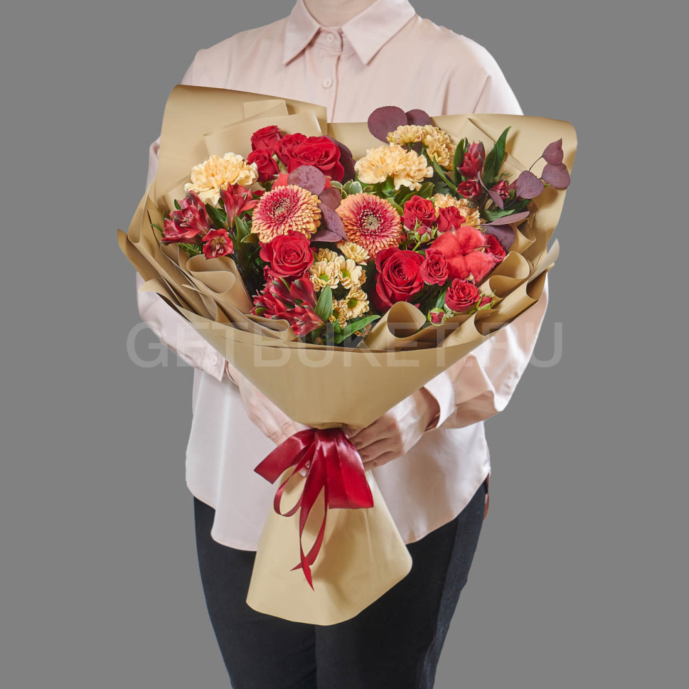 Возможны минимальные отличия букета от фотографии и допустимы отличия по цветовой гамме, так как цветы являются природным материалом и собираются вручную