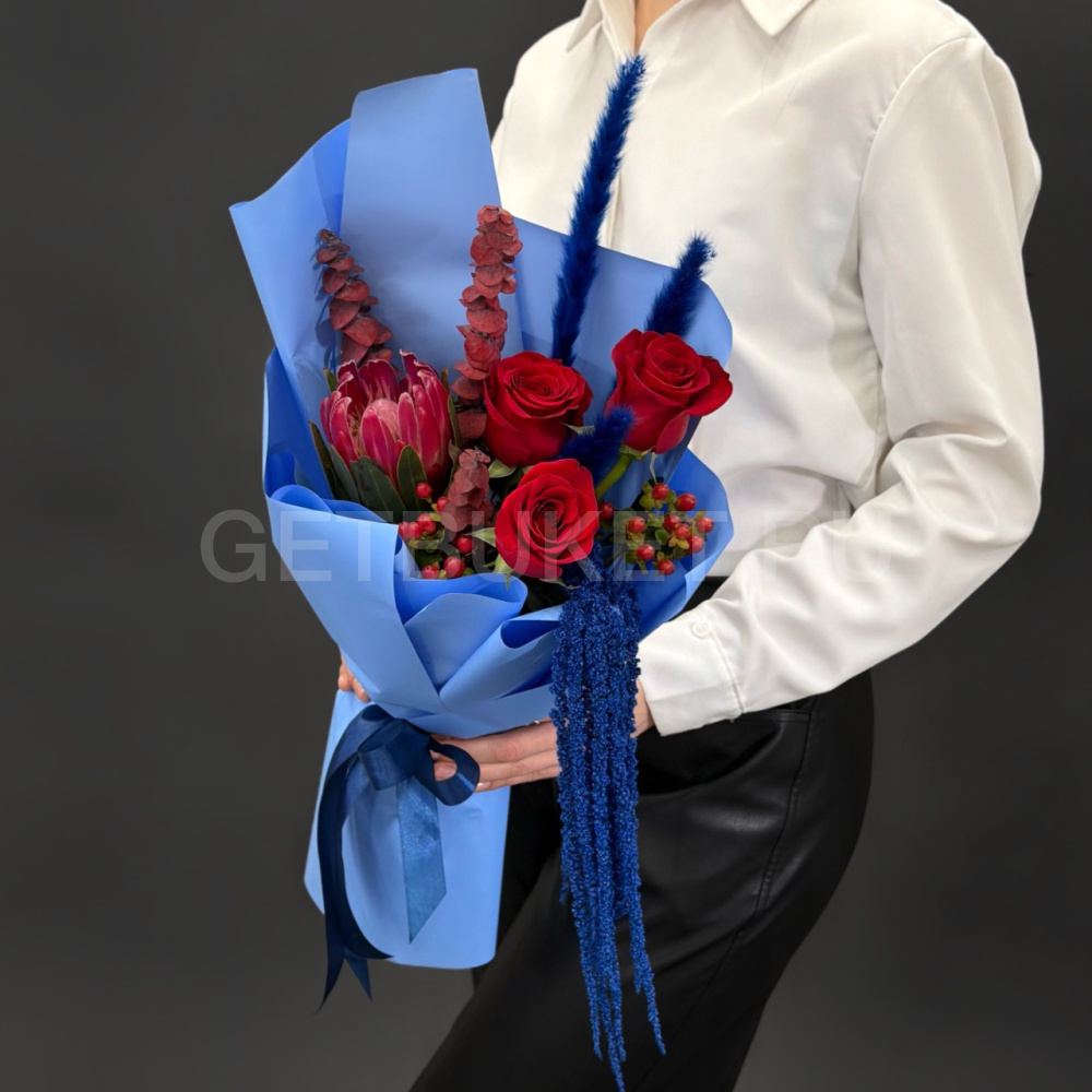 Букет из роз и голубой гортензии с танацетумом8 480 ₽Букет из роз и голубой гортензии с танацетумом 8 480 ₽ -