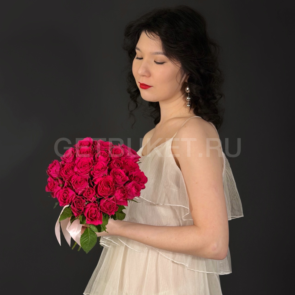 Букет из 25 малиновых кенийских роз