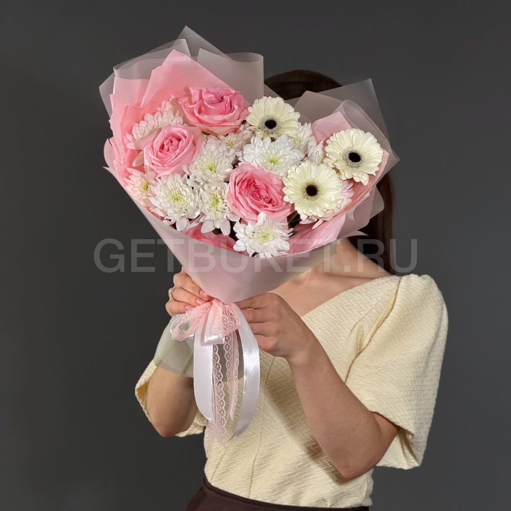 Букет из микса бело-розовых цветов6 290 ₽Букет из микса бело-розовых цветов 6 290 ₽ -