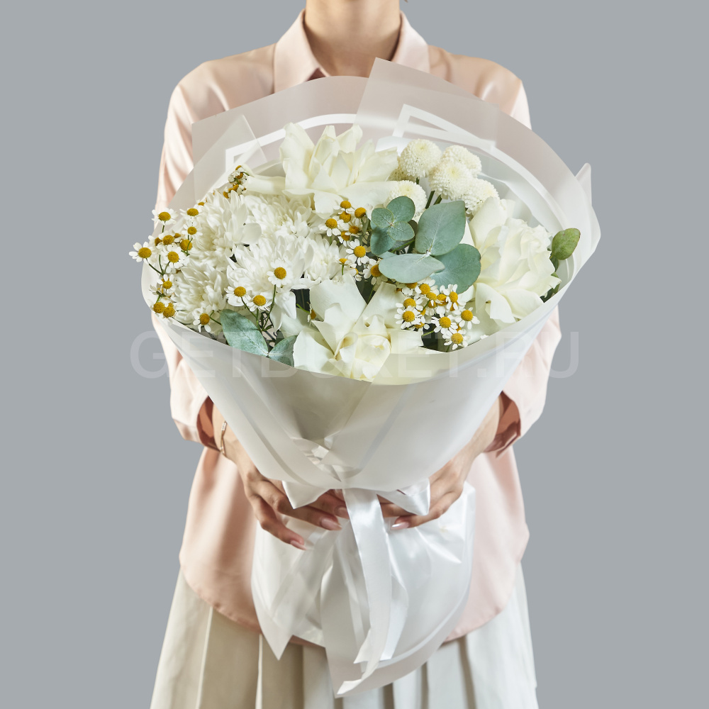 Букет белых роз, хризантем и гипсофилы4 430 ₽Букет белых роз, хризантем и гипсофилы 4 430 ₽ -